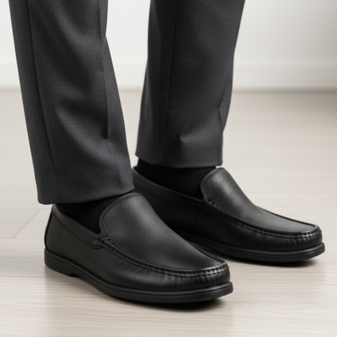 Refined, versatile, and built for lasting comfort — these textured black loafers from SolePace redefine everyday elegance. Perfect for both formal wear and casual sophistication.