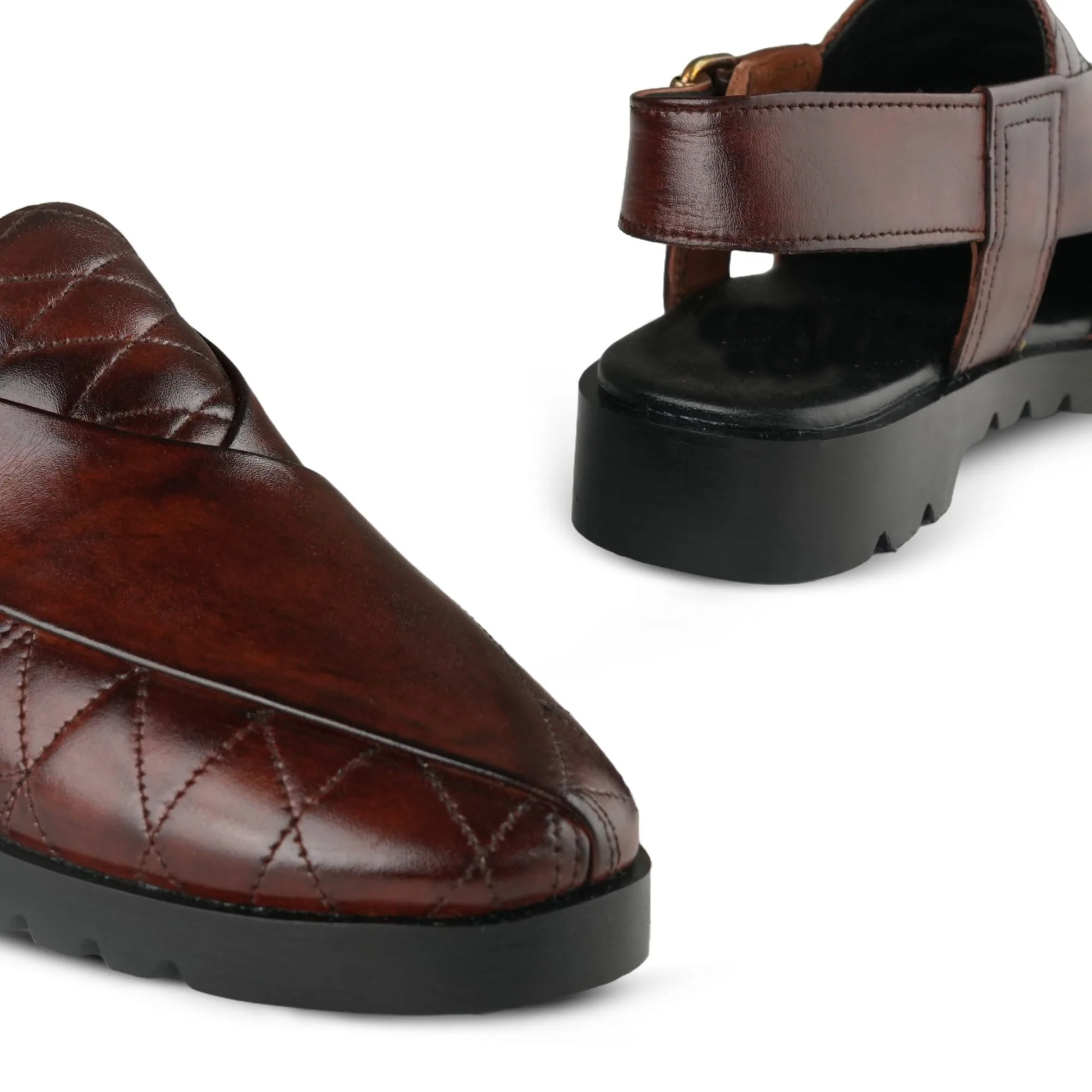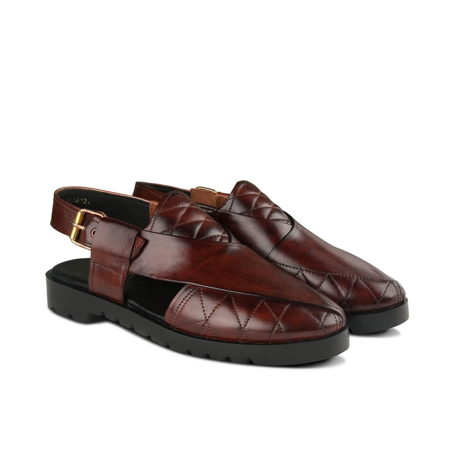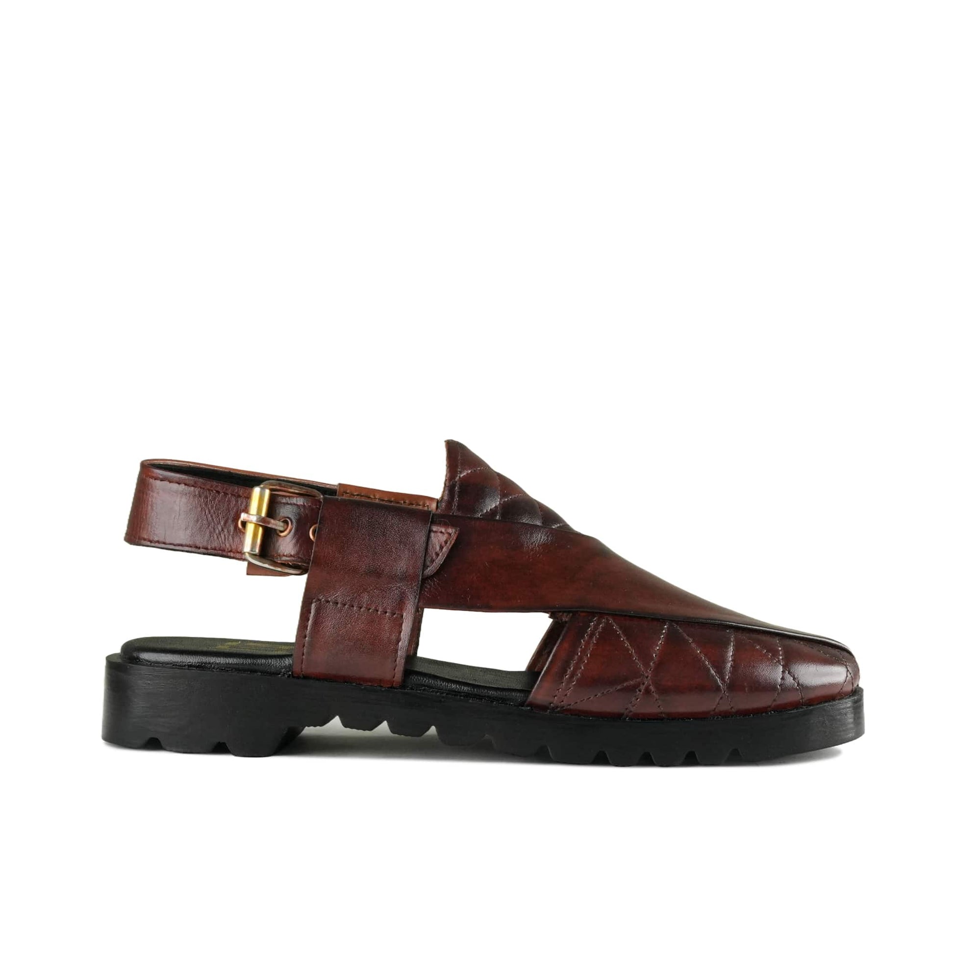 Step into tradition with a modern twist with our Timeless Brown Leather Peshawari Sandals. Meticulously handcrafted from premium brown leather, these sandals feature intricate stitching that embodies elegance and durability. The adjustable strap with a sleek gold buckle ensures a perfect fit, while the robust black rubber sole provides exceptional grip and comfort for all-day wear. Whether you're dressing up for a formal event or going for a casual look, these sandals are the epitome of versatile style.
